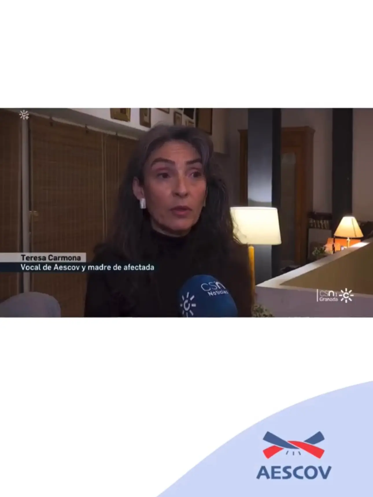 Teresa Carmona, granadina, vocal de AESCOV y madre de Teresa Martín paciente gravemente afectada por Síndromes Compresivos Vasculares, es entrevistada en distintos medios de comunicación de Granada, para dar visibilidad a la dura realidad que viven los pacientes afectados por estas enfermedades raras y hacer eco de la creación de AESCOV, formada recientemente por 10 pacientes y 2 familiares.